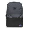 • Padded ergonomic polyester bag straps with plastic strap regulators and Champion brand label on the left strap